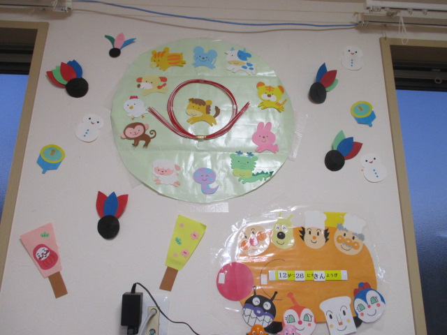 本年もよろしくお願いします/1月壁面 投稿日時: 2026年1月5日 投稿者: 託児所バンビ あけましておめでとうございます。 子ども達の元気な声と笑顔で新年がスタ-トしました。 久しぶりにあった子ども達、少し大きくなったように感じます。 きっと楽しい年末年始をお過ごしだったのではと思っております。 お部屋の壁面が替わりました。めでタイです! 羽子板、凧揚げ、コマ回し・・・お正月遊びは楽しみましたか? 3月まであと3ヶ月となりました。、お子さんの成長を見守りながら一日一日充実した日を過ごしていきたいと思います。今年もどうぞよろしくお願いいたします。