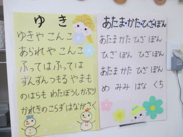 1月のうた 投稿日時: 2026年1月9日 投稿者: 託児所バンビ 1月のうたは「ゆき」です。 ゆきやこんこ、あられやこんこ~♪ 歌詞に合わせて手をひらひらさせてくれる仕草がかわいいです! 1月にゆきみれるかな~