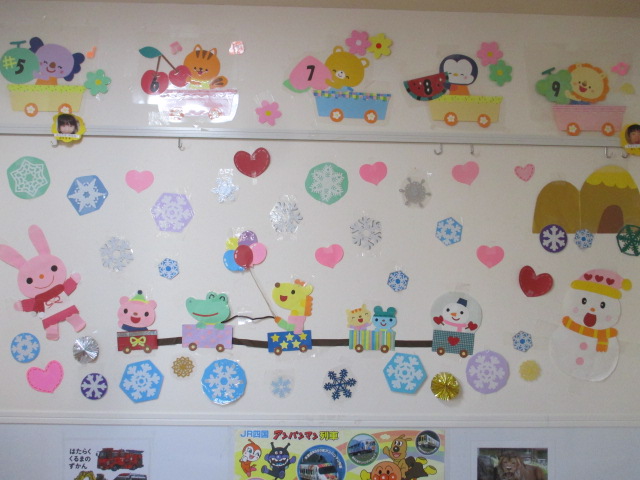 2月壁面 投稿日時: 2026年2月3日 投稿者: 託児所バンビ 寒い日が続いていますが、子どもたちの元気な声が室内を暖かくしてくれます。 室内もカラフルな雪をアレンジして装飾しました。 子ども達が大好きなオニさん達も登場しています。 今年度も残りあと二ヶ月を切りました。 バンビで過ごせる日々もあとわずかですが、子どもたちひとりひとりとの時間をいっそう大切に過ごしたいと思います。